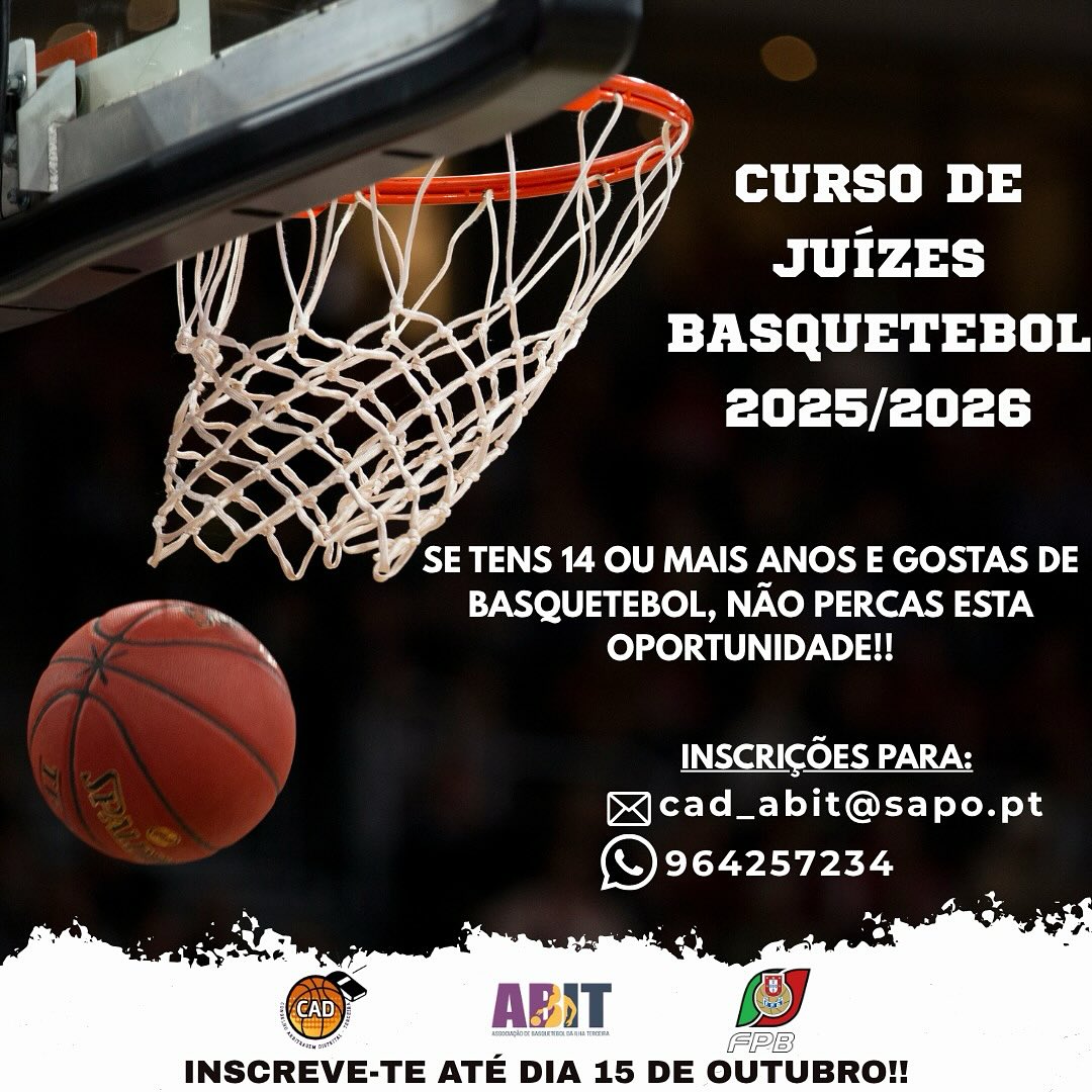 A Associação de Basquetebol da Ilha Terceira (ABIT) informa que estão abertas as inscrições para o Curso de Juízes de Basquetebol - 2025/2026.